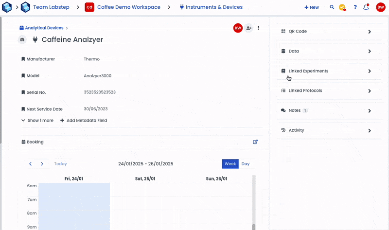 You can now see the experiments and protocols using a device from the device page under the "Linked Experiments" and "Linked Protocols" tabs.