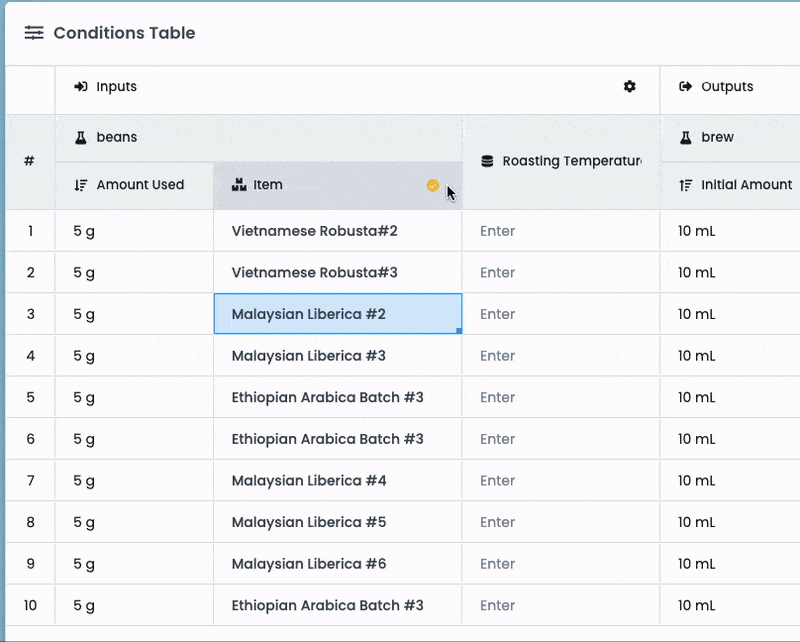 You can now bulk deduct the amount from variable Inventory fields in your conditions table. Labstep will also tell you if the units mismatch the ones in your Inventory.