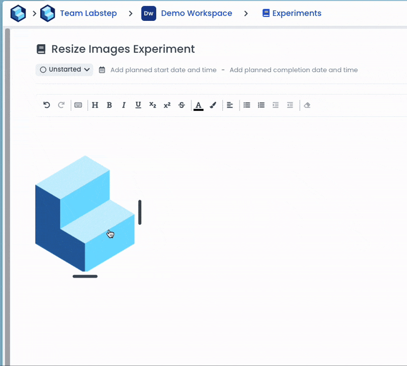 You can now resize images directly on Labstep. We've finally done it! Proof that we do listen to our users and your feedback!