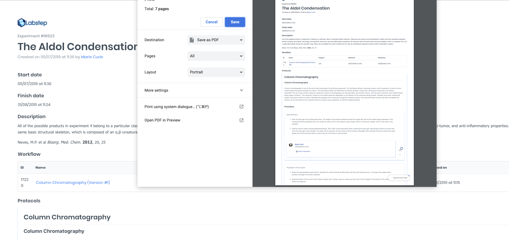 The print view for experiments now contains all the details. Using your browsers print function, it is also very easy to export the print view page to PDF.