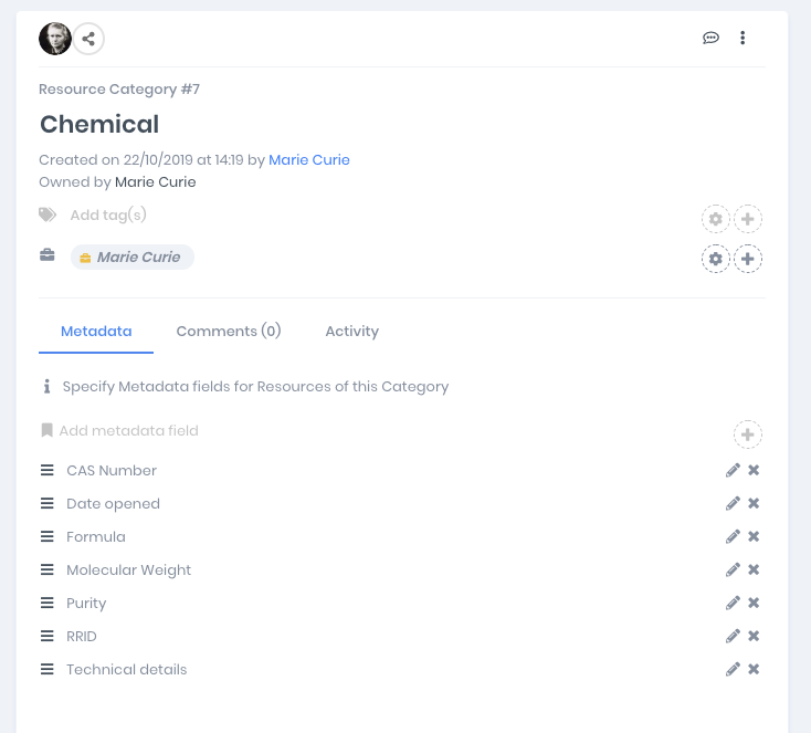Keep track of these different items and the metadata related to each category by using Labstep Inventory Categories. You can create Categories such as Cell Line and Chemical, with custom metadata fields for all of the details you want to track. You may also want to set default values for category metadata fields to help you fill these in later.
