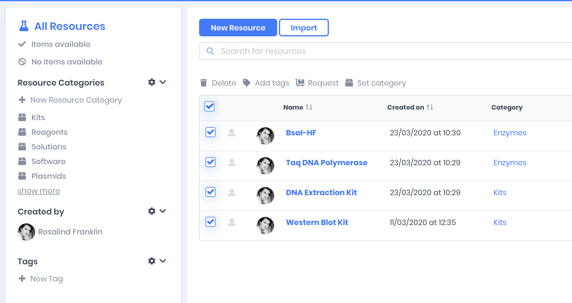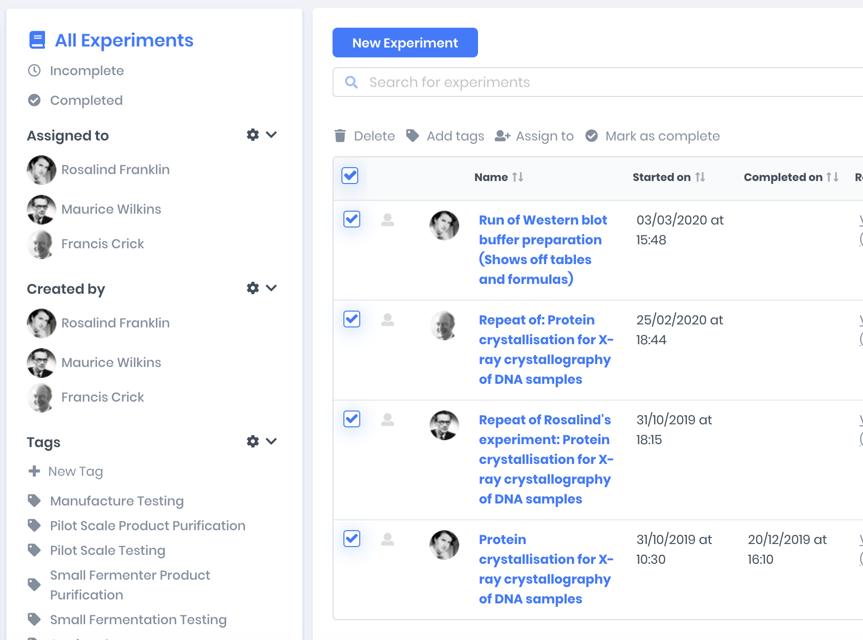 Tag multiple protocols or experiments at once to help you stay organised.