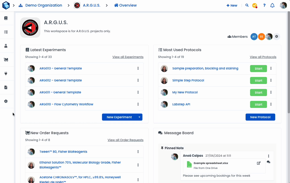 You can choose how you are notified of changes and updates for each specific content in each workspace you are part of. Notifications can be managed for experiments, devices, workspaces, order requests, protocols, orders, resources, items, locations, and notes.