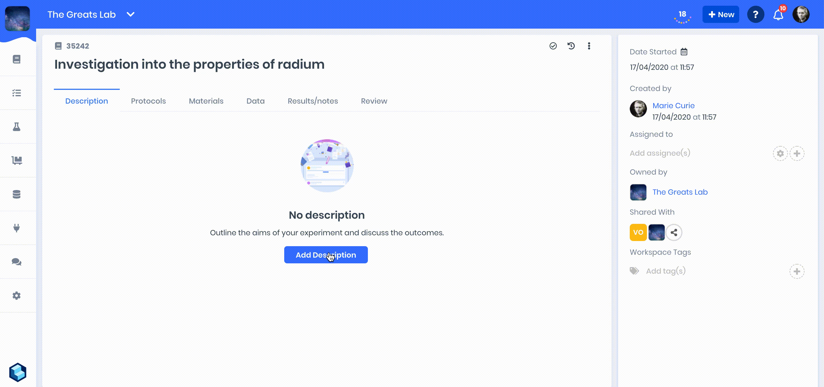 To accommodate this, you can now build interactive protocols directly in your experiments to detail your methods as you develop them.