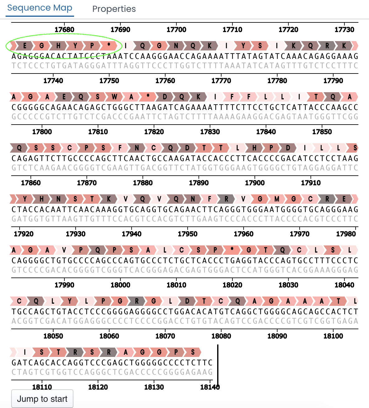 Show/hide amino acid numbers that indicate every 10th amino acid in the code. This can only be accessed after the sequence or a portion of a sequence has been translated and selected