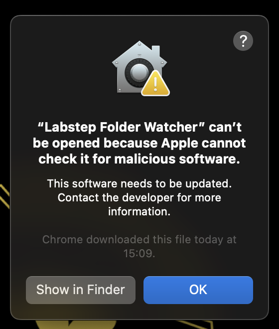 Labstep team tip: If you're using a Mac and it is not letting you open the Labstep Folder Watcher, find out how you can override it here.