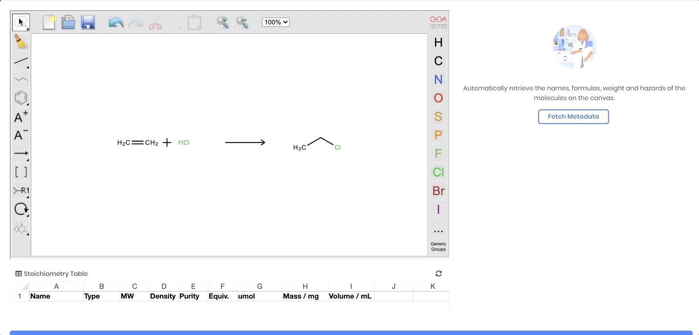 We've added stoichiometry tables to our molecular editor to make it easier to calculate the mass and volumes of reactants you need for your chemical reactions.