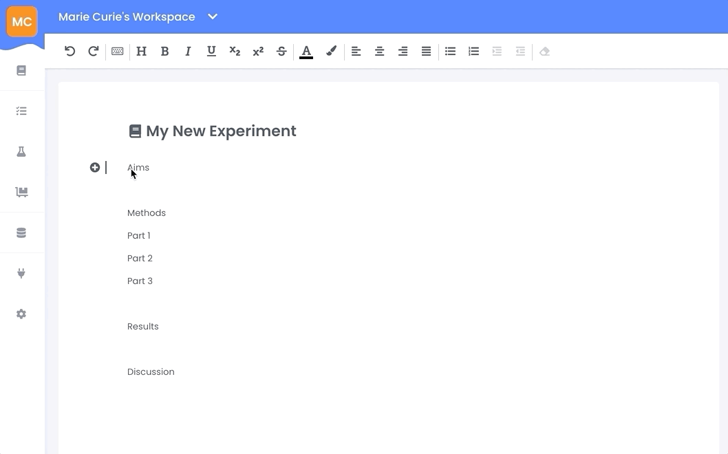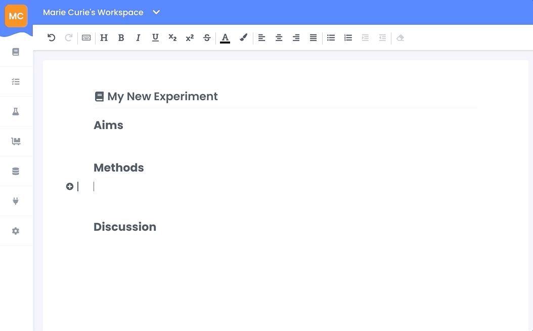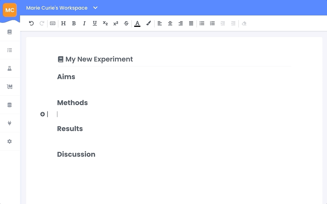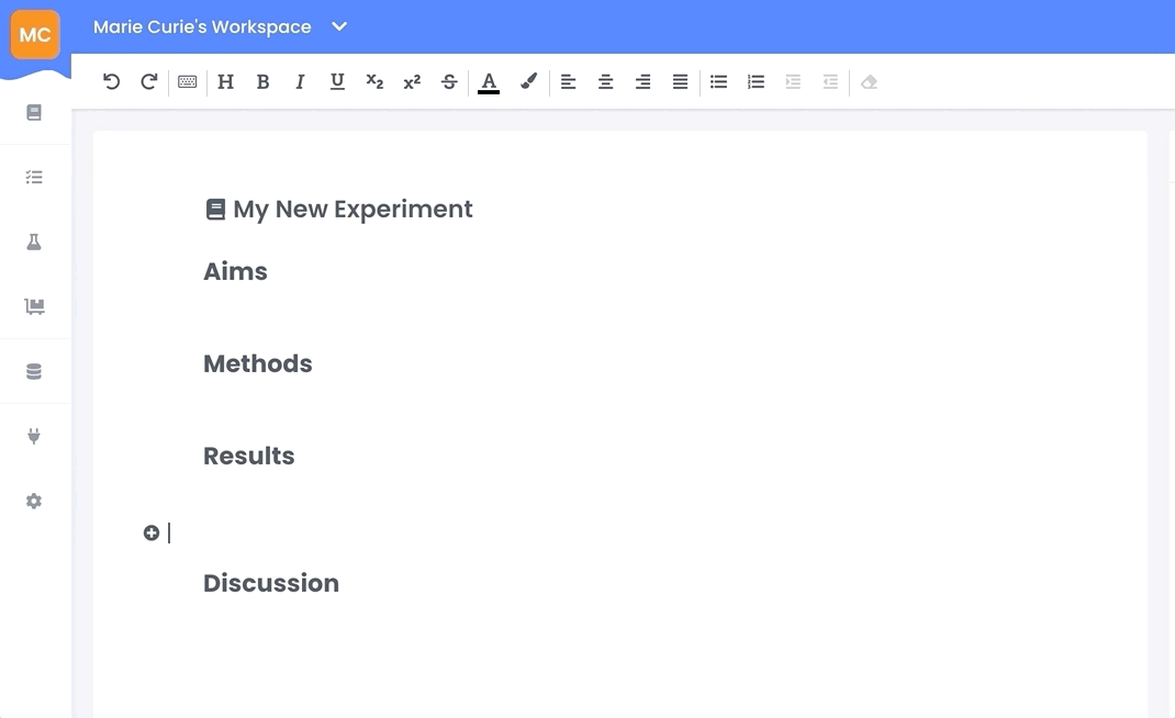 With this upcoming release, you will be write up your experiments in a fully flexible single page document.