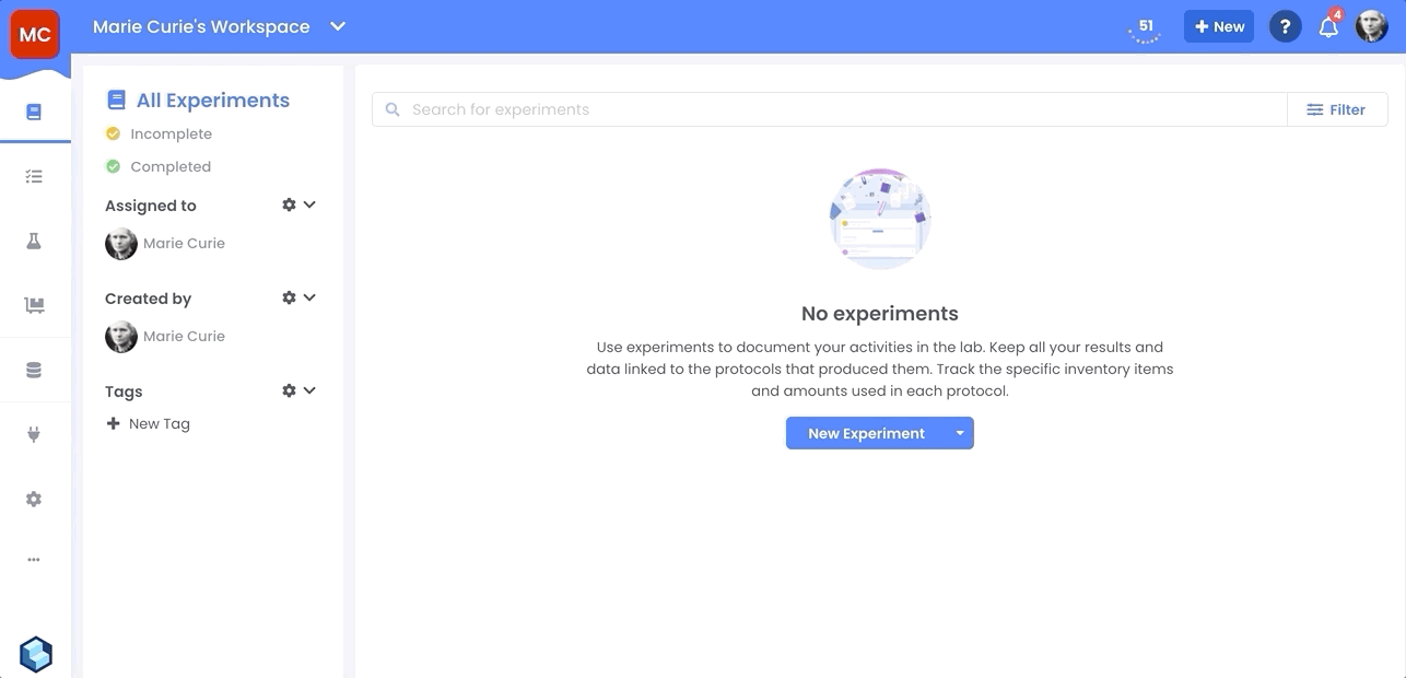 In this release we introduced experiment templates. These can be used to encourage a consistent structure to your experiment entries or to make it quicker to run common workflows of protocols.
