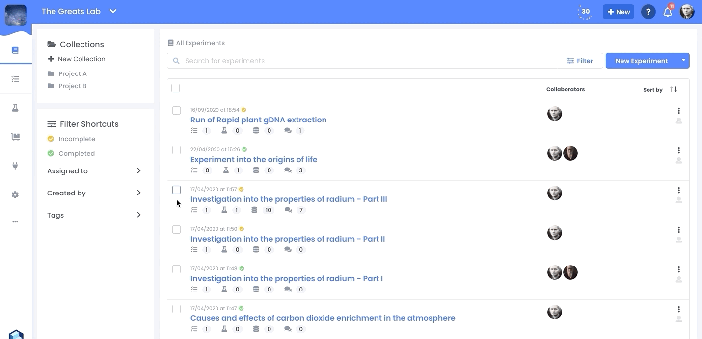 Collections are a new way to organise the experiments and protocols within a workspace.