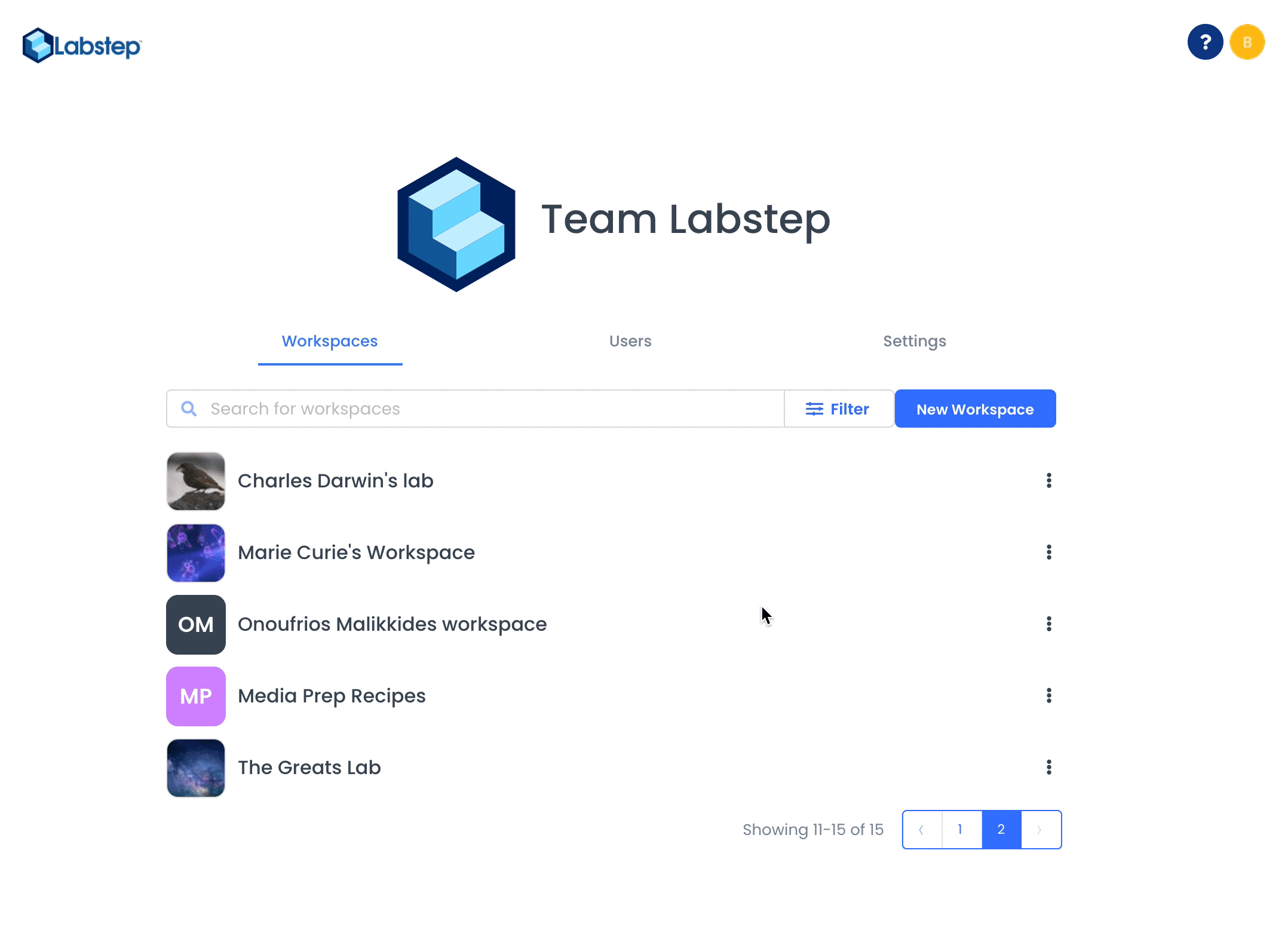 See an overview of all the workspaces created by all users in your organisation. As Admin you have full owner permission over all the content within the workspaces.