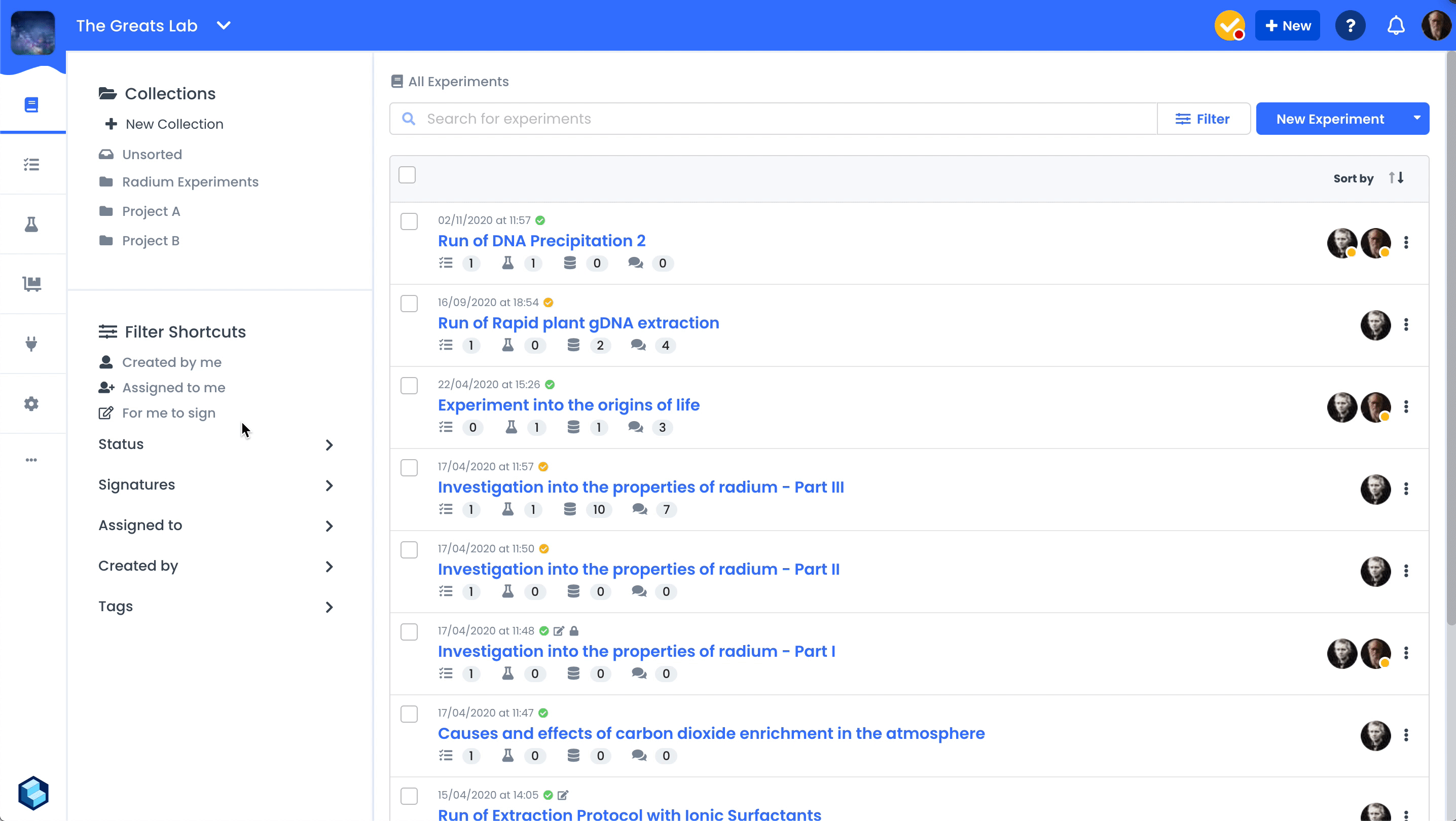 For reviewers, you can now also filter for experiments which need a signature from you in a single click.