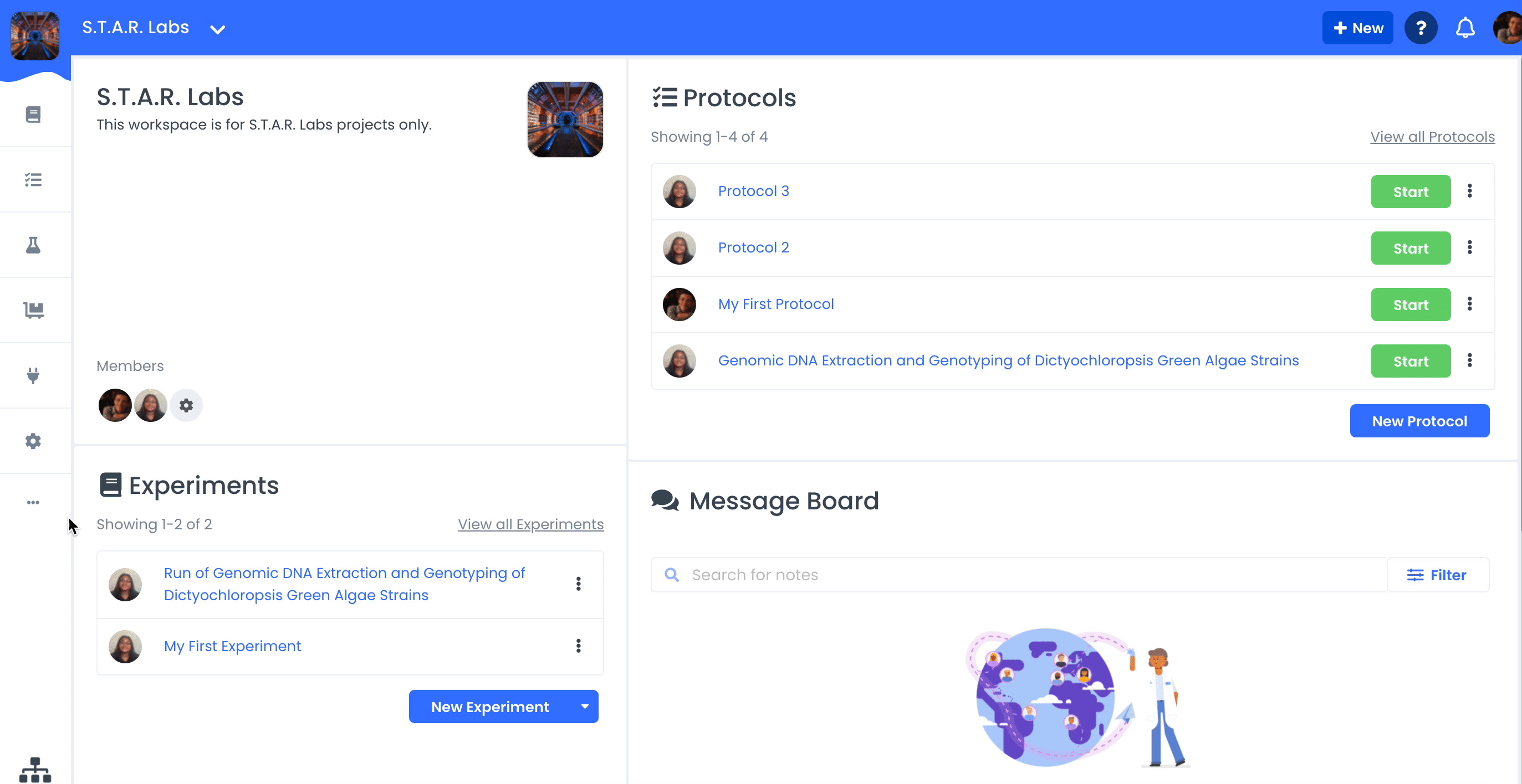 Set up experiment templates that will already have your experiment workflow configured and pre-populated. Experiment templates can be used to encourage a consistent structure to the entry or to make it quicker to run common workflows of protocols.