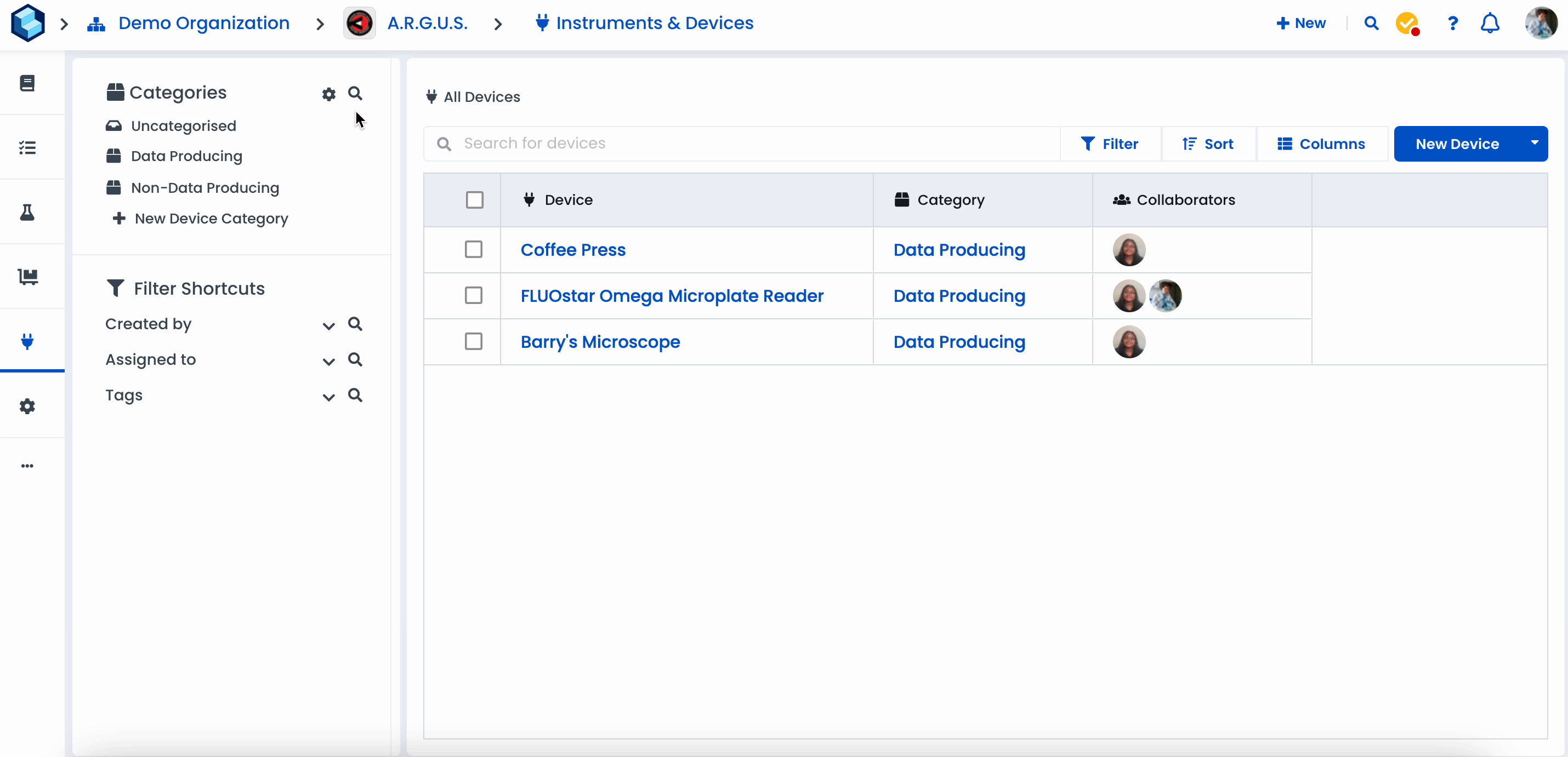 Labstep team tip: You can set Category templates for your Instruments & Devices and add fields to capture all essential information. When you create a new device in this category, you'll only have to fill in the metadata fields accordingly.