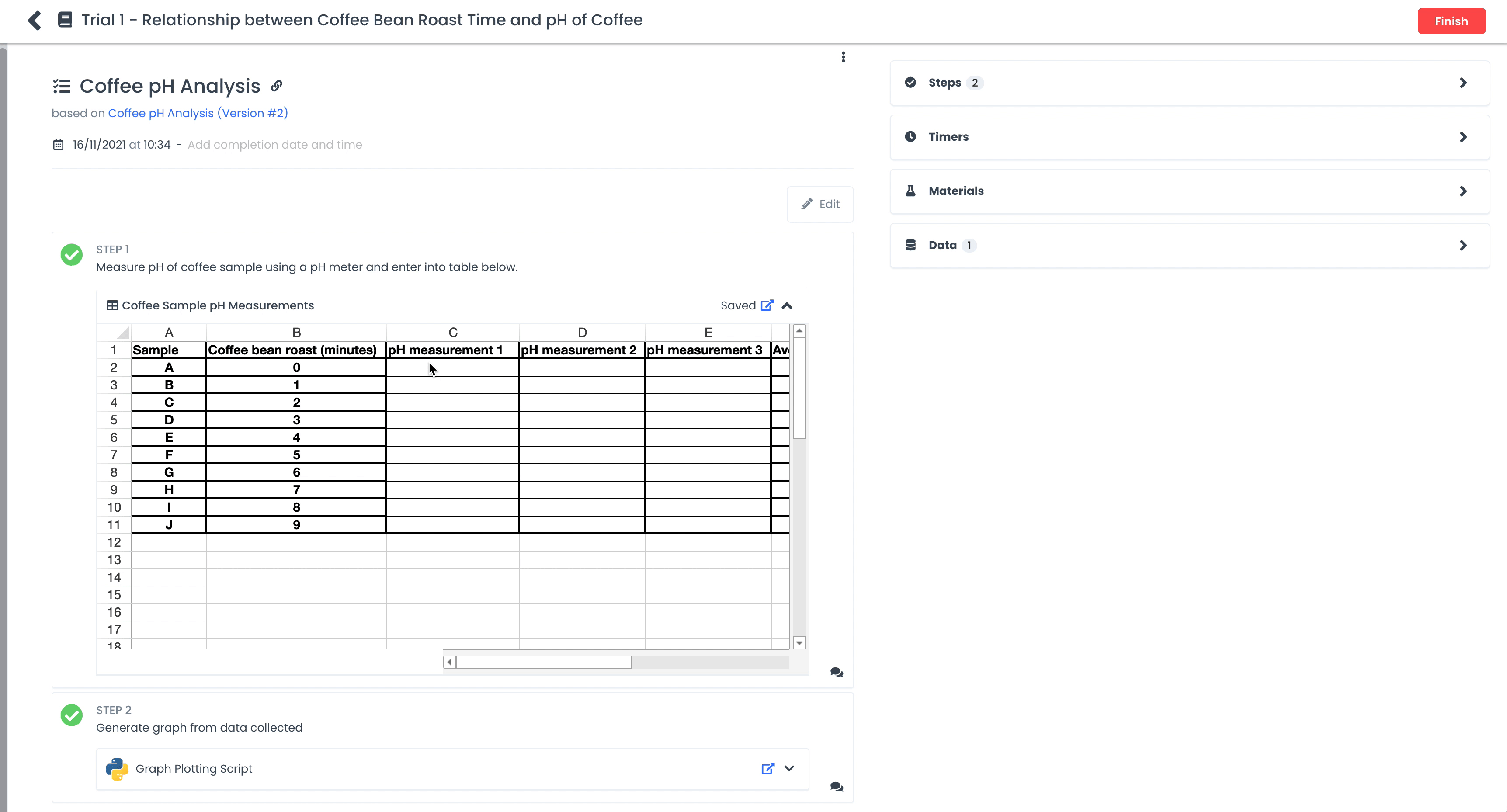 Use them in conjunction with the Labstep Python SDK to automatically analyse the data from your experiments and attach graphs and processed data.