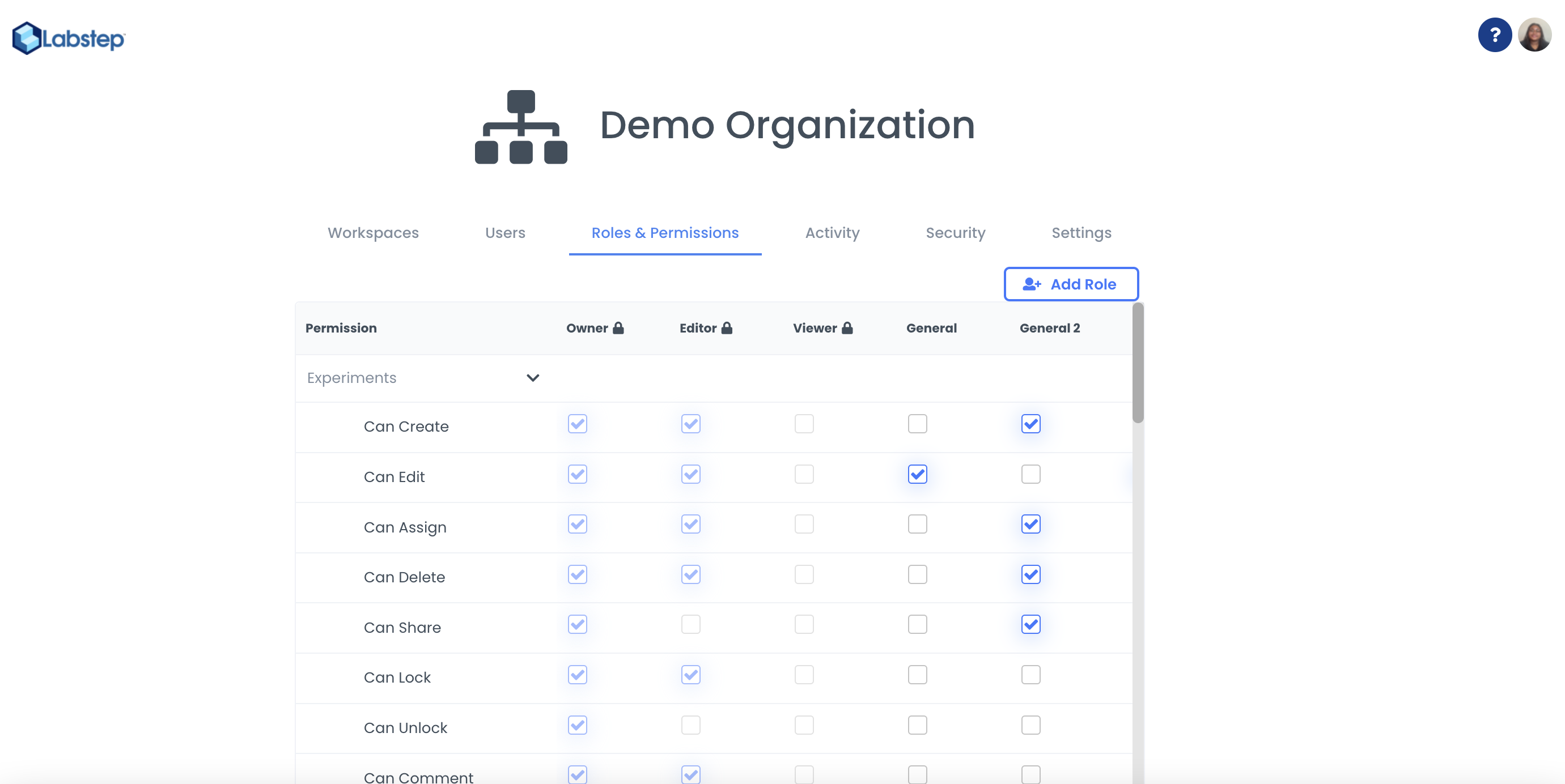 You can now be in total control and decide who can do what in the Workspace. Permissions are broken down by entity and action type. For example, someone could be able to edit the Inventory but not Experiments or be able to sign but not edit Experiments.