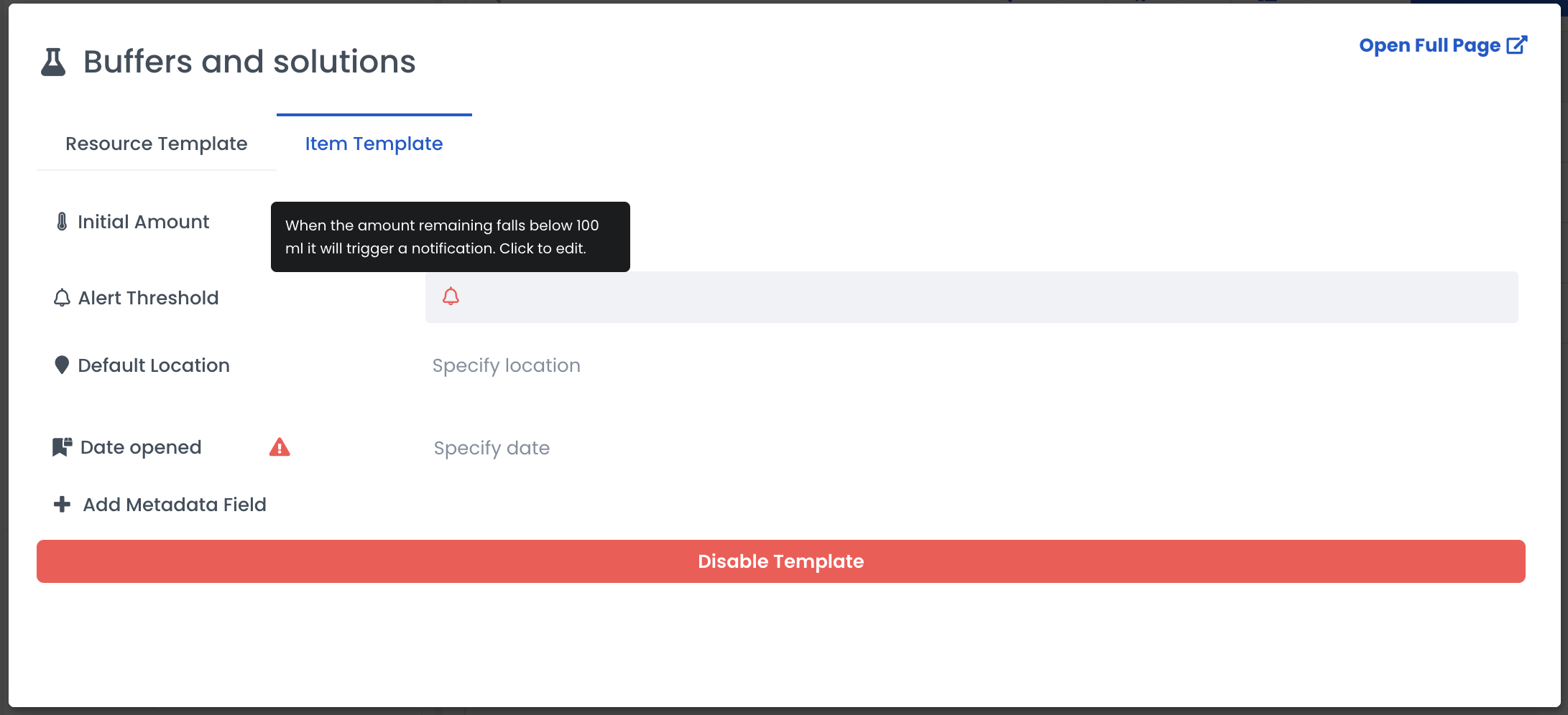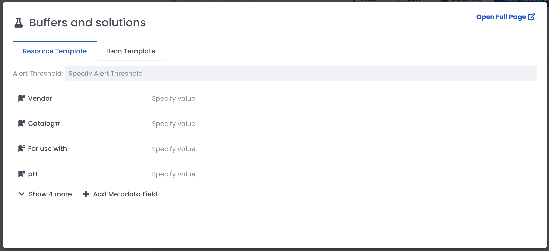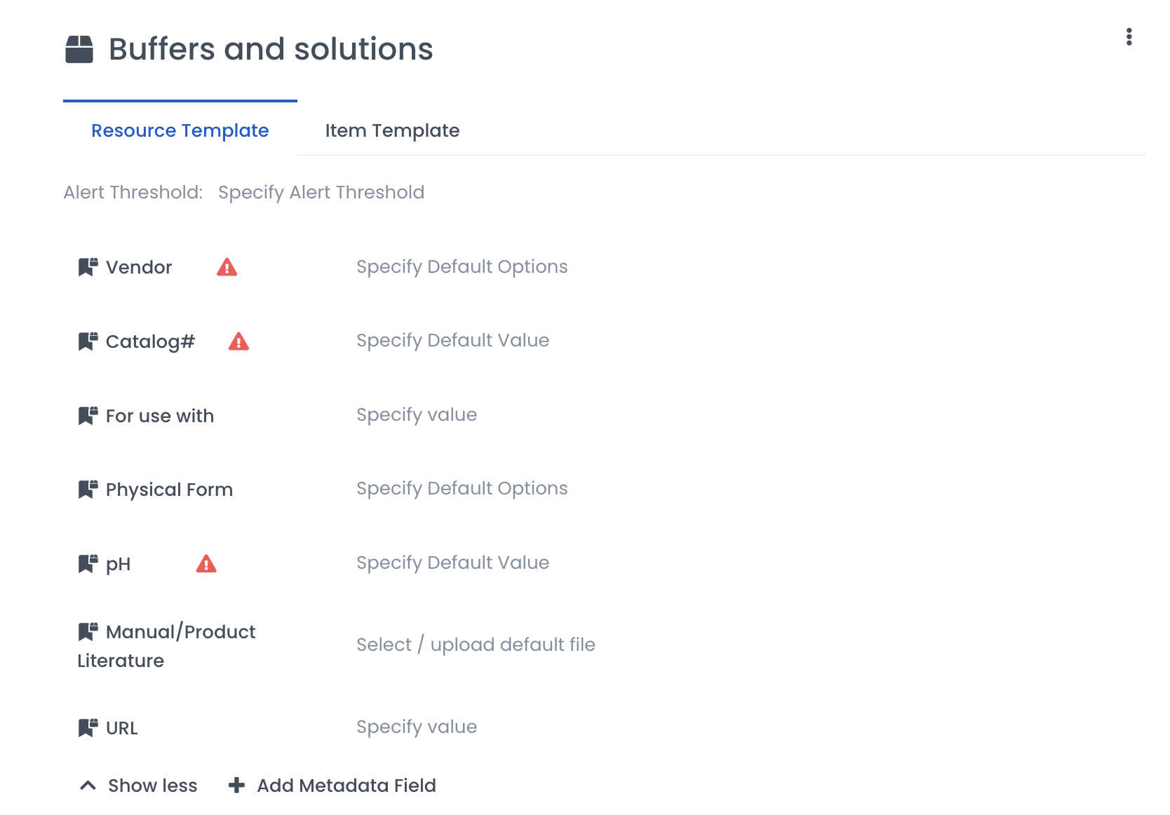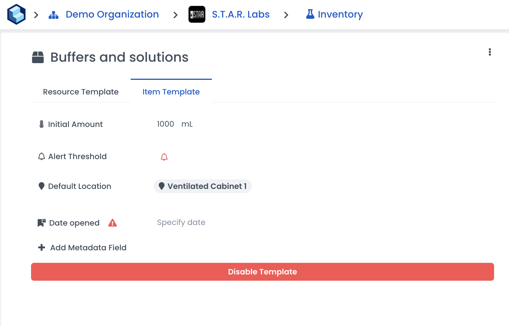 Using templates is a way to track your Inventory consistently and efficiently. Templates can be set at the resource and item levels to track more detailed information about what you have in the lab.