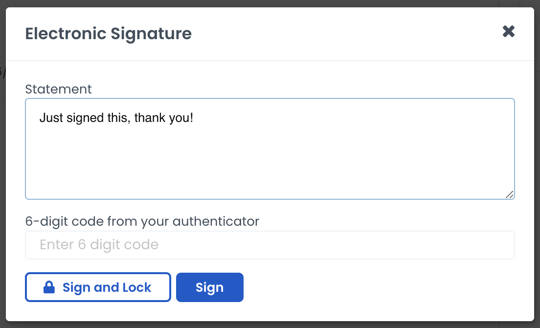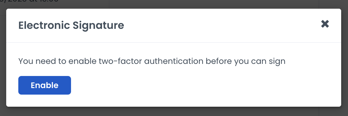 You can set up 2FA specifically for signing experiments. This means that users must enter a code from a verified device when signing experiments. This is an extra compliance measure that can help ensure the integrity of your data.