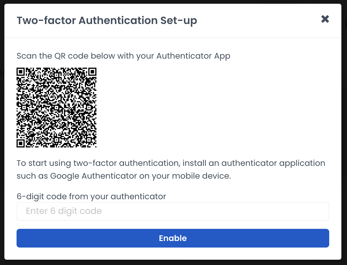 Two-factor authentication (2FA) is an extra layer of security that helps protect your workspace from unauthorised access. By enabling 2FA for experiments, you will be required to enter a unique code from your authentication app when signing experiments. Please note that this is only for signing experiments; if you wish to set up 2FA for your whole organisation, please see this article.