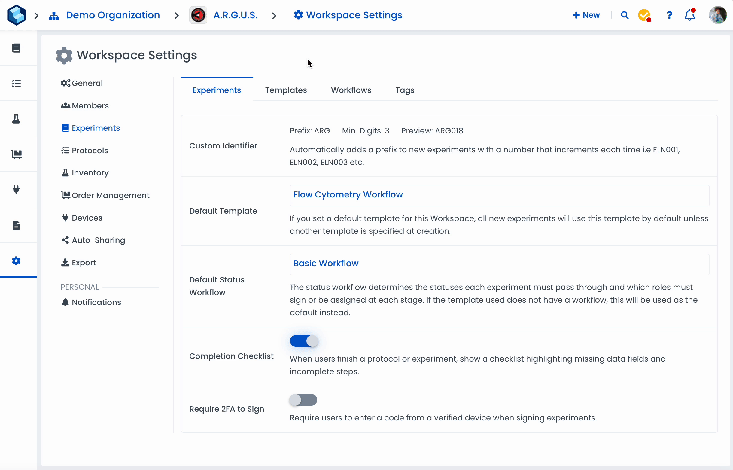 Now that you've configured your workflows, it's time to use them. Similarly to how you can set a default experiment template for a workspace, you can also set a default workflow! This means that whenever someone within the workspace creates an experiment, the workspace's default workflow will automatically be used.